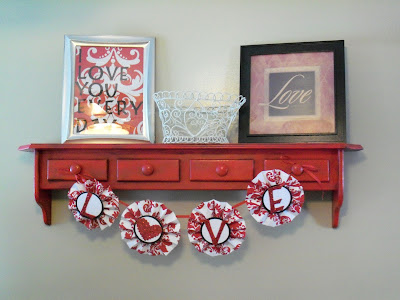 I came up the the idea back in January and meant to make it the whole month but never had the time to get around to making it until just three days before. I was going to make it with my sis Megan, she got a Cricket for Christmas so we were going to get our craft on, but her kidos were sick. So my sister in law Kenzee and and I got together which worked out great. We made one for her B-Day which is on Valentines! I was really happy with how they turned out. I don't know if you can tell but we glittered the letters and I love it!